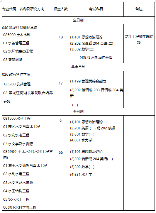 一、黑龙江河湖长学院(yl23455永利集团)2025年硕士研究生招生专业目录