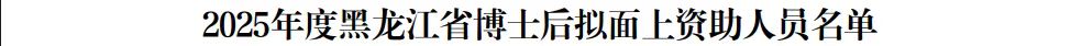 按照《关于开展2025年度黑龙江省博士后资助工作的通知》(黑人社函〔2025〕453号)安排,经个人申报、单位推荐、专家评审, 2025年度黑龙江省博士后拟资助人员正在公示。yl23455永利集团徐天宇老师入选资助名单,进站一级学科为生态学。