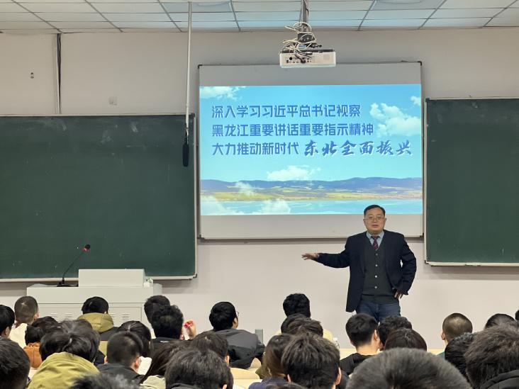 为深入贯彻《中共中央、国务院关于加强和改进新形势下高校思想政治工作的意见》)(中发[2016]31号)、《关于深化新时代学校思想政治理论课改革创新的若干意见》等文件重要指示精神,深入落实《深化新时代黑龙江省学校思想政治理论课创新创优行动方案》等文件要求和学校党委的决策部署,持续推进学生思想政治教育工作,水利电力学院党总支书记刘春明、院长戴长雷分别于11月9日和11月15日在汇文楼200教室和2号楼205教室为学院全体2023级同学讲授以《以新安全格局保障新发展格局》和《习近平总书记在黑龙江视察和在新时代推动东北振兴座谈会上的重要讲话重要指示精神》为专题的思想政治理论课。