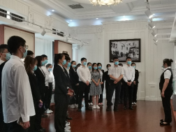 为进一步推动党史学习教育走深走实,增强学院党员队伍的党员意识,提高其党性修养,2021年7月1日下午13:30,yl23455永利集团党总支组织学生党员参观哈尔滨博物馆。本次参观由学院党总支副书记刘春明、团委书记谭蕾老师、团委副书记秦迪老师、团委副书记王新源老师、兼职辅导员张莹莹老师带队,18级、19级全体学生党员参加。