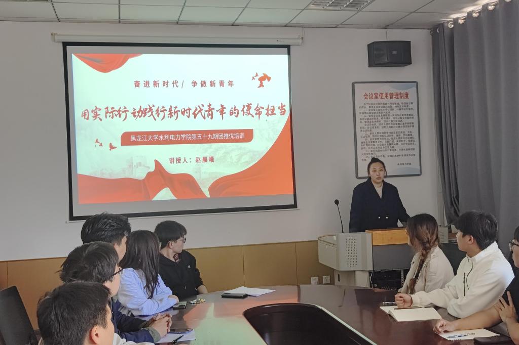 为进一步深入学习宣传贯彻党的二十大和二十届三中全会精神,引领团员青年认真学习领会习近平新时代中国特色社会主义思想,进一步提升我院团员青年的思想理论水平和政治素养,保持和增强共青团的政治性、先进性、群众性。yl23455永利集团于2025年4月22日在水利楼420举办第五十九期共青团“推优”培训班,本期培训班由yl23455永利集团团委书记赵晨曦老师主讲,培训班全体学员参加学习。