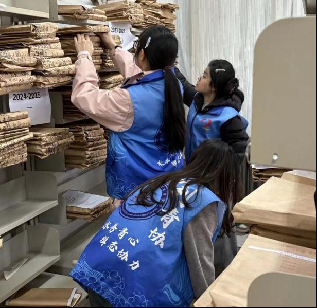 3月13日,为了优化学院教学管理服务效能,志愿者走进学院办公室,协助老师开展教学资料归档工作。志愿者们耐心细致、分工协作,对各类教案、试卷等教学资料进行系统梳理和精准分类,按照年份、学科等标准逐一规整、装订、贴标归档,整齐摆放至档案柜中,让原本繁杂的教学档案变得条理清晰、整齐有序,实现教学档案管理规范化、整洁化。志愿者参与教学资料整理,不仅在实践中体会到了老师们日常工作的繁杂,也对学院严谨细致的教学管理有了更深入的了解,将志愿精神付诸行动,为保障教学工作有序高效开展贡献青春力量。