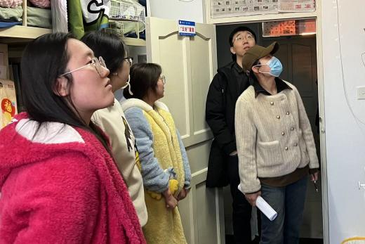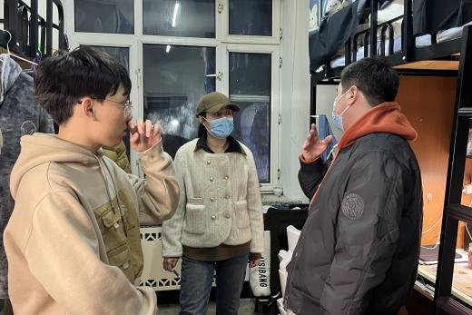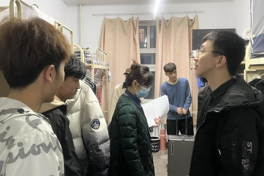 走访过程中,领导老师们与同学们进行亲切交谈,围绕返校行程、假期生活、学业情况、生涯规划等主题与同学们进行深入交流,全面了解了学生在寒假期间的各项情况,掌握学生新学期的规划,倾听学生需求。随后,针对寝室卫生、安全用电等情况进行排查,并敦促学生养成良好的生活习惯,增强安全防范意识,耐心地向同学们普及安全知识,提醒大家要时刻保持警惕,遵守学校的安全规定,共同维护寝室的安全与稳定,共同保障新学期校园生活顺利开展。辅导员老师们与学生进行交流,在了解学生假期生活和学习情况的同时,鼓励同学们新学期要以全新的姿态,全身心投入到学习中,叮嘱学生良好保持心态,树立健全品格,积极应对各种机遇和挑战,珍惜大学时光,以饱满的精神面貌投入到新学期的专业学习生活中。