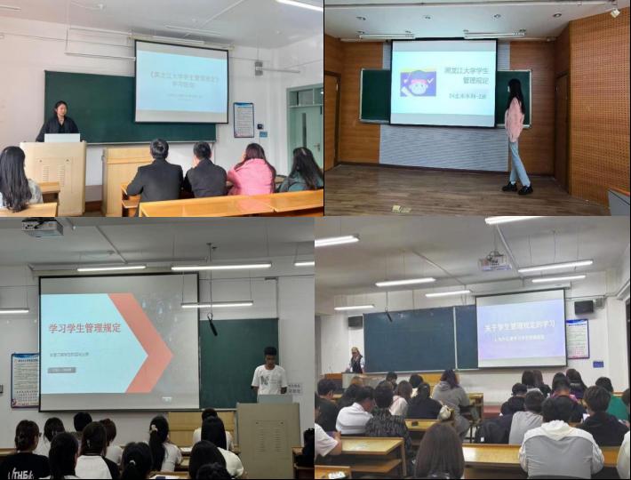 研究生各班班长及本科生各班新生班主任向班级同学认真解读了《永利官网学生管理规定》的各项内容,重点讲解了关于学生的权利与义务、学籍管理、学生奖励与处分条例、学业预警、公寓管理规定等内容,强调了遵守学生管理规定的重要性。同时向所有新生号召作为黑大学子,应严格遵守各项规章制度,以身作则,做遵纪守法文明修身的黑大学子,养成良好的学习习惯,在校期间积极参加社会实践、志愿服务活动,在生活中严格要求自己,不断提高自身文化水平和综合素质能力。