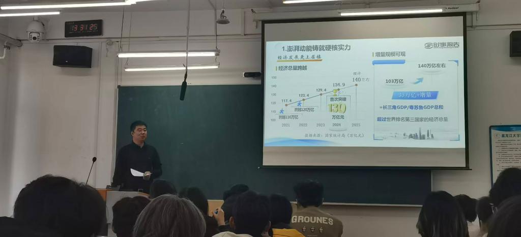 学院党委书记刘春明为2025级新生讲授“决胜‘十四五’,奋发向前行”专题课。课程围绕决胜“十四五”的重大意义、基本内涵和实践要求展开,强调其作为推动高质量发展、实现全面建设社会主义现代化国家目标的关键阶段的重要性。书记鼓励同学们要保持积极进取的态度,脚踏实地学习专业知识,努力提升思想境界与学业水平,以实际行动为国家水利事业的发展添砖加瓦,为实现中华民族伟大复兴的中国梦贡献水利力量。