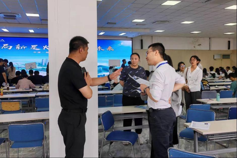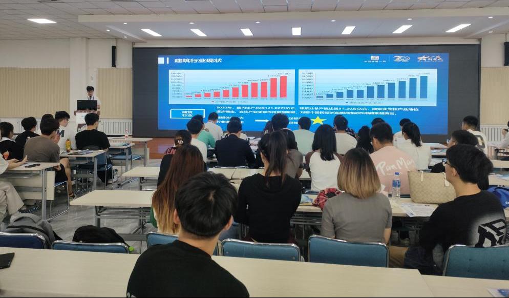 中国建筑一局(集团)有限公司(简称中建一局)致力于成为2023年世界500强第13位——中国建筑旗下最具核心竞争力的世界一流企业。中建一局以习近平新时代中国特色社会主义思想为指导,全面贯彻党中央和国务院决策部署,全面落实中建集团“一创五强”战略目标和“166”战略举措,致力攻坚高质量发展、创建世界一流企业。宣讲会上,中建一局(集团)有限公司宣讲人先播放企业宣传片向同学们展示了企业成长与发展,以及现今规模等,并且结合PPT对相应的岗位进行了详细讲解。最后,有意向的同学递交了自己的简历并参加了现场面试。