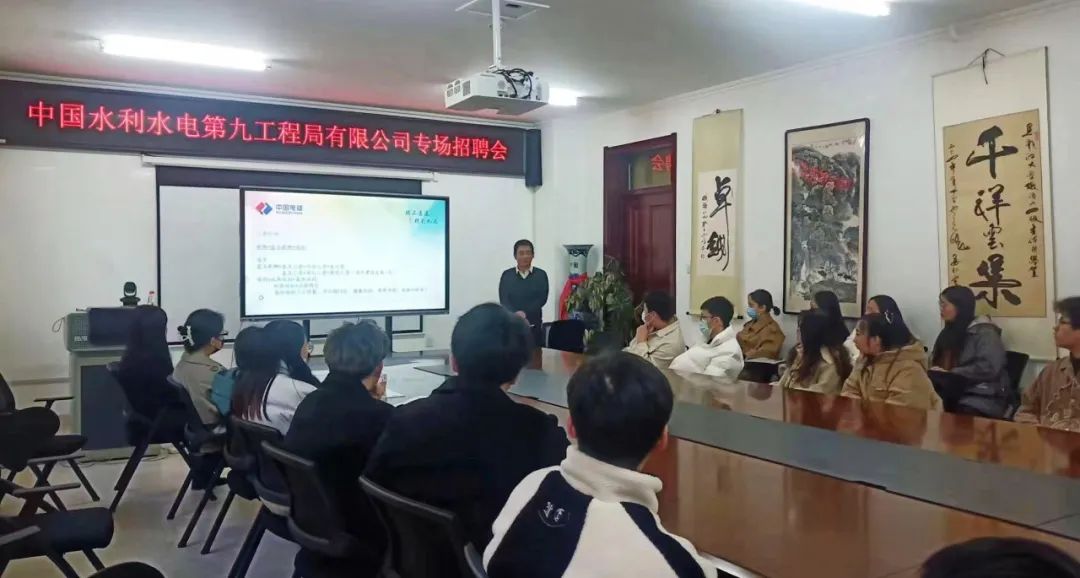 随后,相关负责人向同学们介绍了公司概况、企业文化和发展前景,让同学们对水电九局有了进一步了解。负责人还为同学们详细地介绍了招聘岗位信息,并从岗位介绍、薪酬福利、招募对象等方面为同学们进行了具体说明,并表示希望在后续的合作中,可以为学院毕业生拓展就业渠道,吸纳学院输送更多的高素质人才。